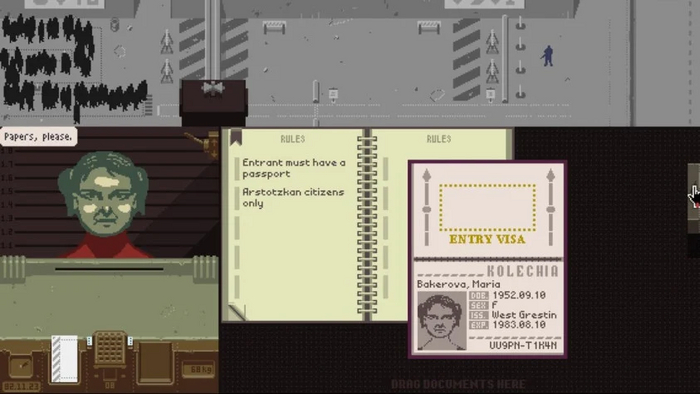 Там где манекенов пропускаем, это конечно же отсылка на Papers Please.