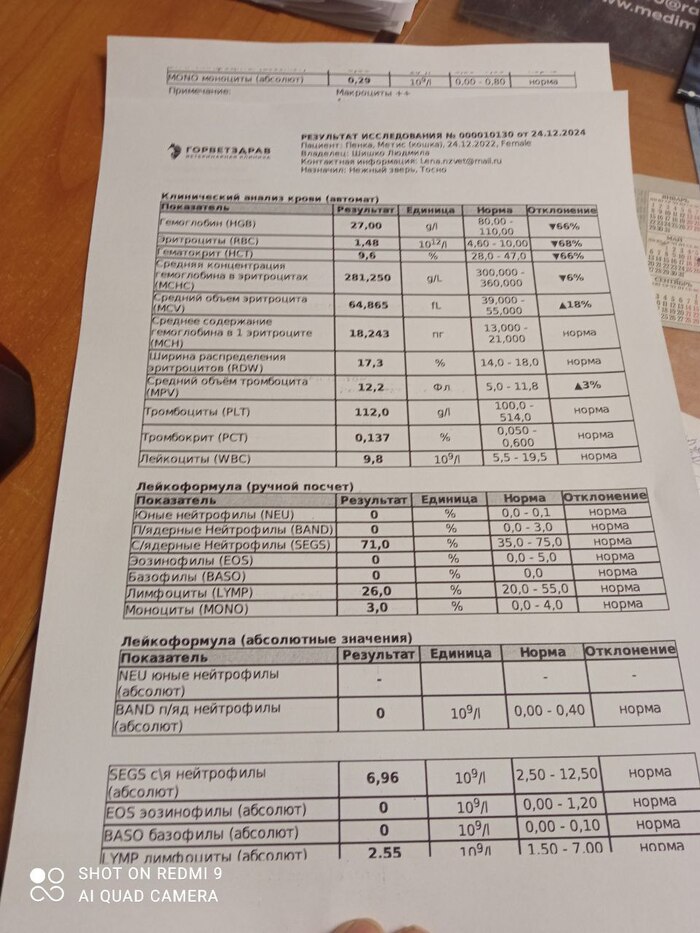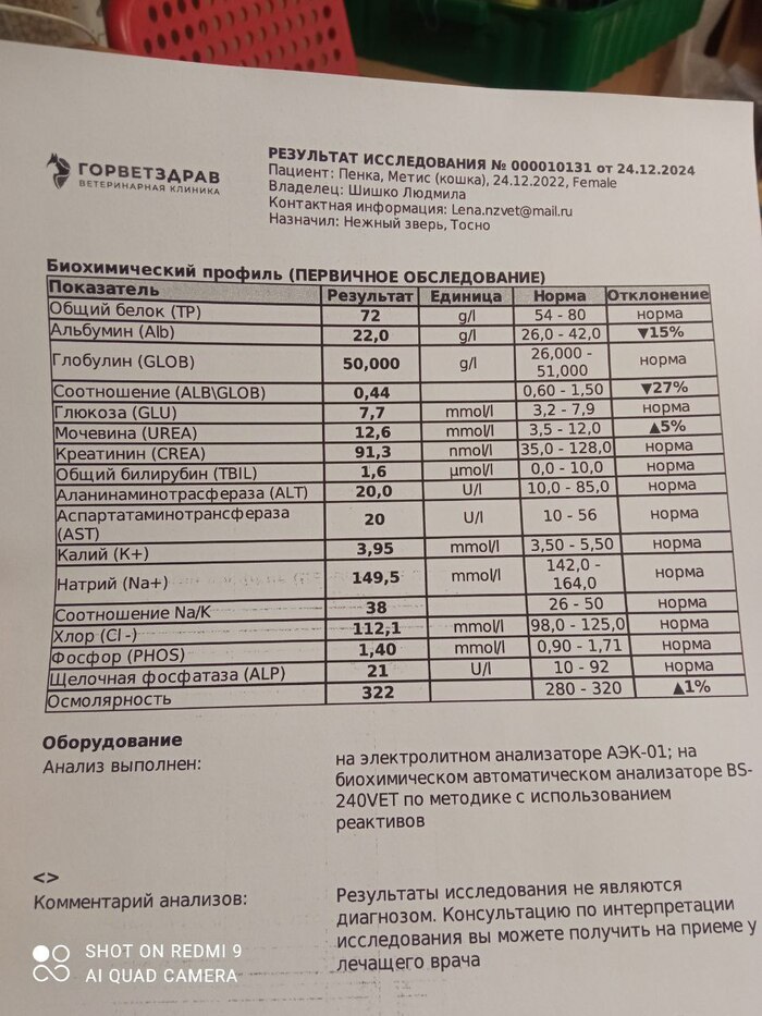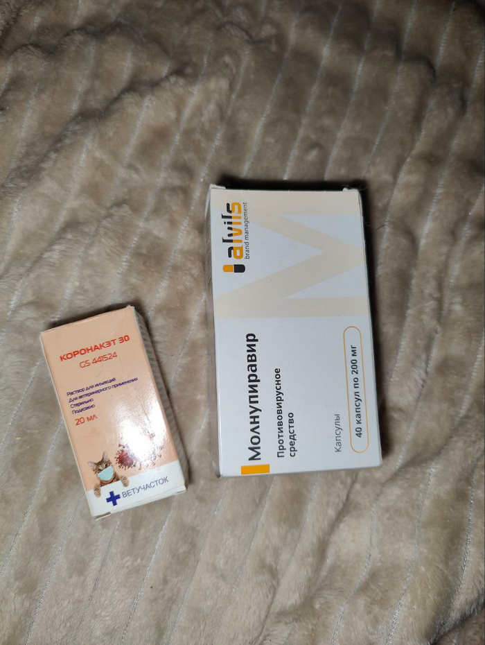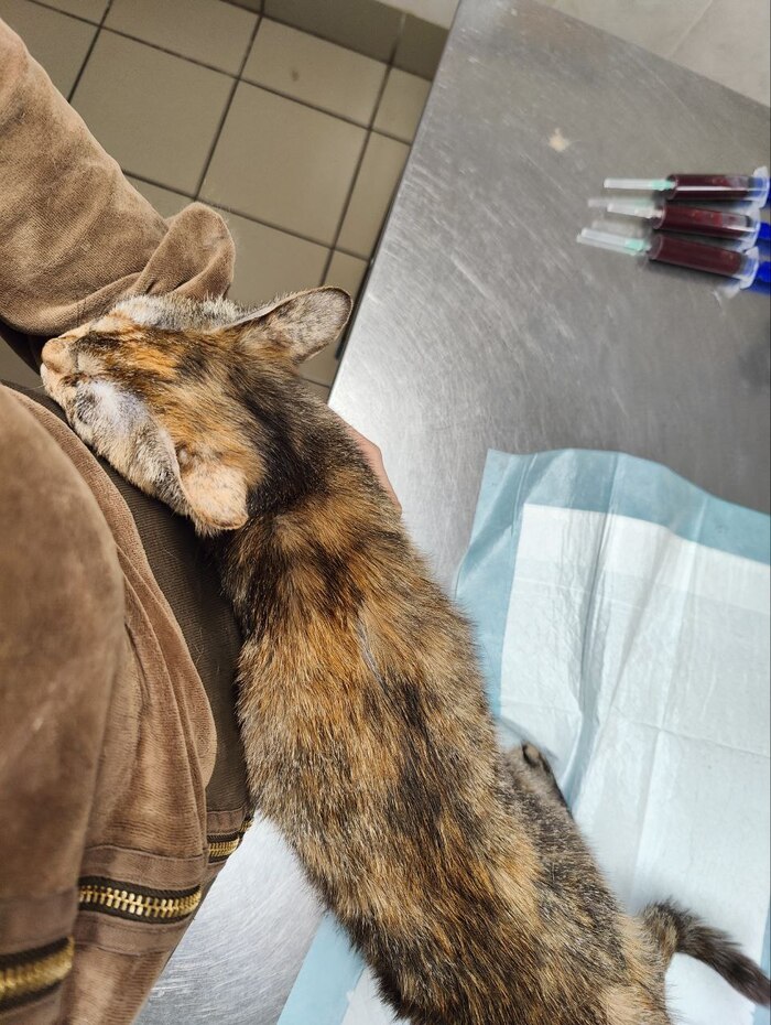 Всем привет. Позавчера вечером Пенка отказалась от вкусняшки. Я сразу же отвезла ее на анализы крови (клиника, биохимия). Был очень низкий гемоглобин. Срочно перелили кровь от Яичкина. Отсекли так же ВИК и ВКЛ. Предположительно, это ФИП либо кровепаразиты. Сейчас Пенка получает таблетки и GS от ФИП + доксициклин. Сейчас она всё ещё переливается уже дома. Пенка маленьким котенком поехала в новый дом, но, к сожалению, ее вернули из-за сильной аллергии у ребенка (мне присылали анализы). Она с подросткового возраста была очень худенькой кошкой и я всегда пристально за ней следила. Очень надеюсь, что у меня получится ее вылечить. Мне советовали новый инновационный препарат для лечения ФИП, который сделали в Сколково. Но я пока не могу найти никакой информации, кроме рекламных статей. Возможно, я меня предвзятое отношение конкретно к Сколково, но рисковать я не буду. Это уже третье животное, которое я лечу по схеме GS-441524 + молнупиравир.