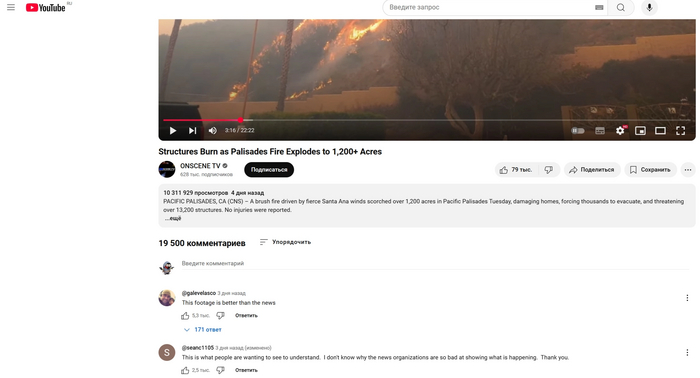 Про пожары в США можно говорить открыто. Буквально сразу в новостях и пабликах озвучили масштабы катастрофы, выложили лица ответственных, должности и зарплаты. Никто не запретил публикацию фото/видео, количества пострадавших, не замылил информацию "контролируемыми горениями". Даже посты на местном Пикабу не потёрли.