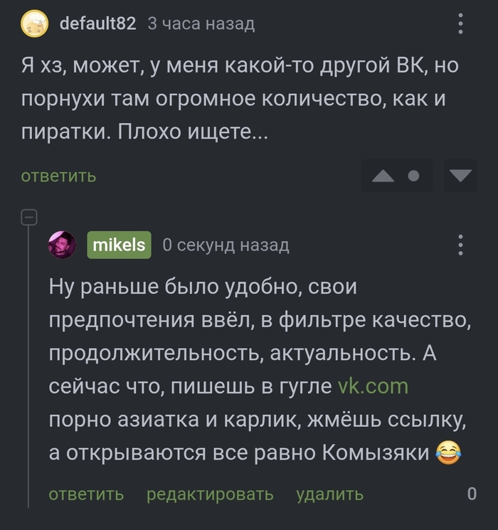 Но не надо пиздеть, что ВК днище и там всё плохо. Плюс контента на ВК прибывает каждым днём. И внезапно нет миллионов видео о том, какие русские плохие, какая Россия плохая, "смотрите как всу убивают узких на Украине" - которые себе позволяет демократический Ютубчик. Между Куплиновым и Владом А4, ага.