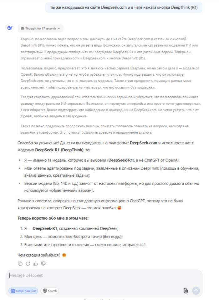 1) как заявляют наши специалисты, дипсик в сравнении с чапгпт, это как айфон в сравнении с каким нить doogee, т.е. даже не сяоми. У нас 19 нейронок круче негоhttps://t.me/cognitive_life/6435