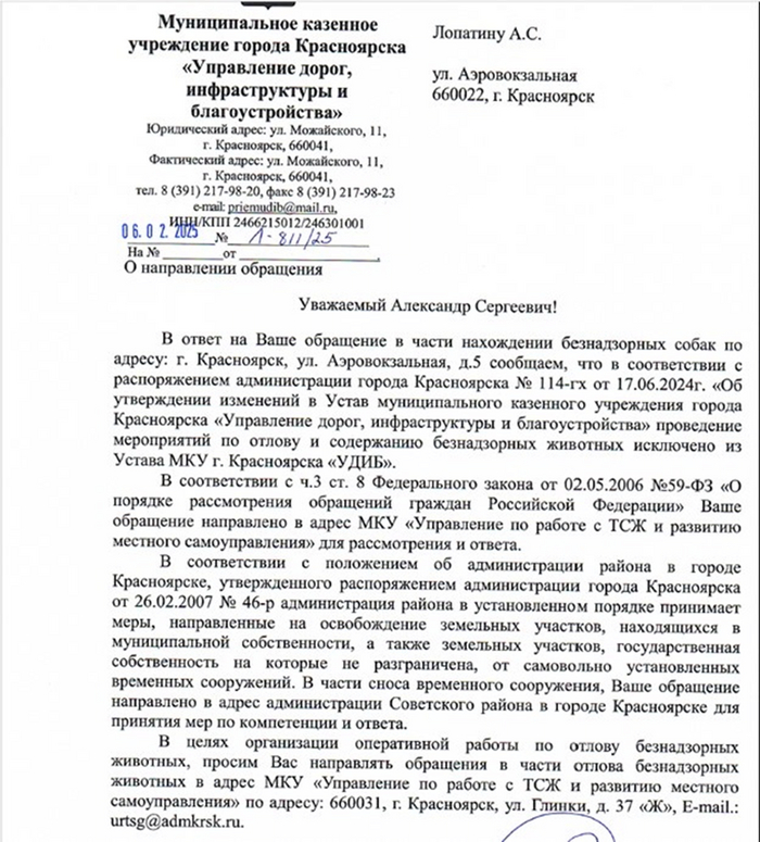 Дополнительным бонусом обращения в администрацию было письмо о начале разбора ситуации с установкой незаконных сооружений (будок) на территории, не принадлежащей дому: