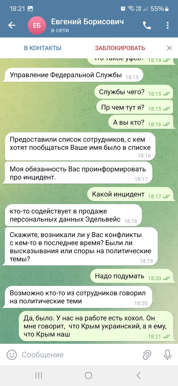 Подыгрываю естессно. Минут через 20 звонок в ТГ - молодой хлопец без какого либо акцента