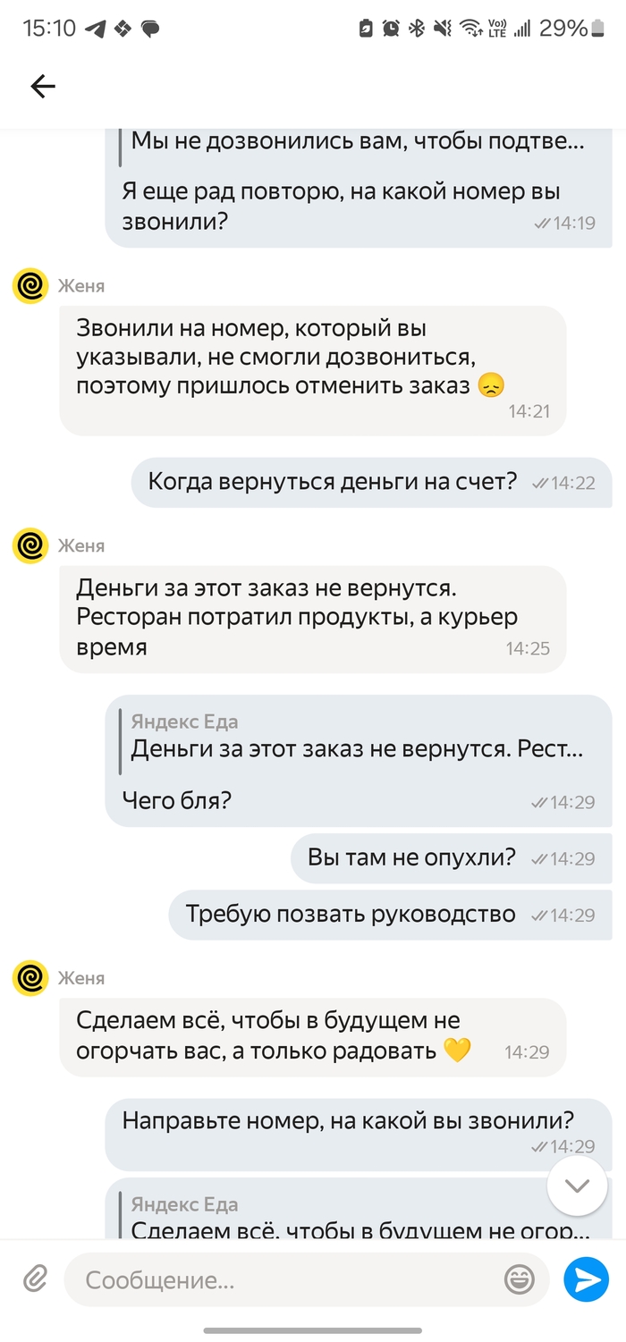 " После второй уже просрочки я пошел разбираться в аналлах страницы заказа и нашел название магазина. В поиске нашел этот самый магазин, их ВатсАпп, написал им вопрос. И О ЧУДО! они, оказывается, более клиентоориентированы, чем яндекс. Перезвонили, все уточнили, ответили. И дату доставки правильную назвали, и ко скольки примерно привезут. Но прикол в том, что они, блядь, ЭТО УЗНАЛИ У ЯНДЕКС ДОСТАВКИ, тк это они должны мне были всё привезти!"