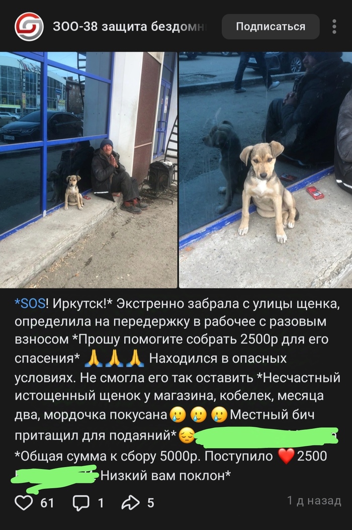 И чувства смешанные, ведь как можно ставить собаку превыше человека... То есть щеночка с мордочкой в царапинах спасли, а "местный бич" внимания не стоит. Миром собрали уже не малую сумму, на потенциально опасную собаку, а к человеку внимания 0, только цинизм.