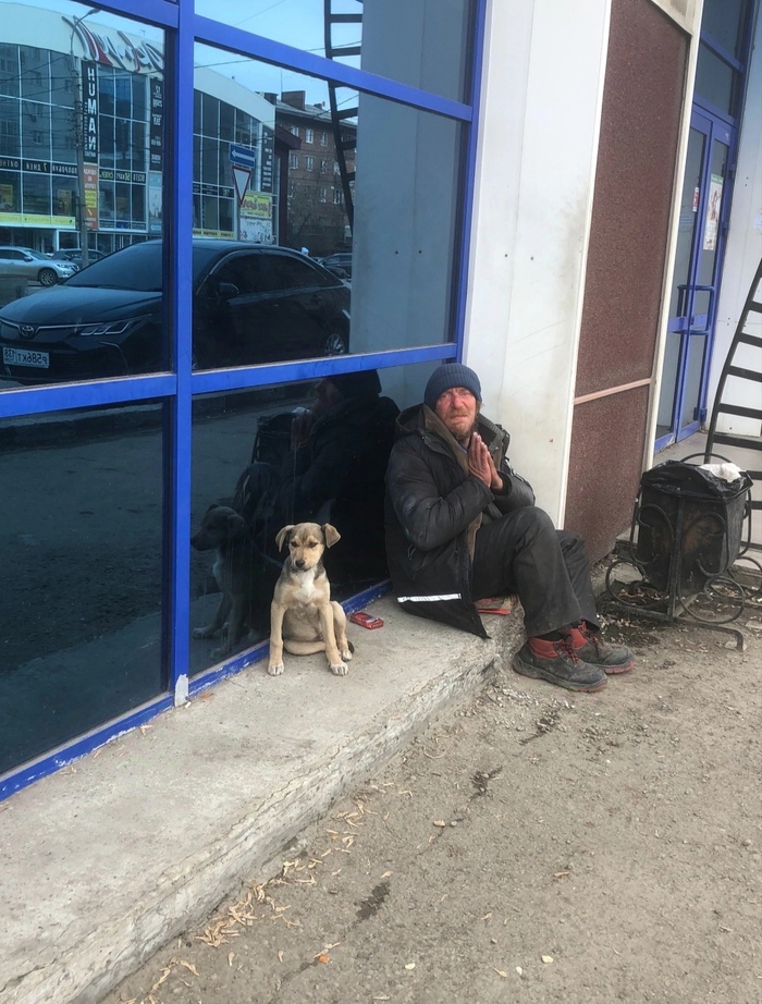 У таких людей нелёгкие судьбы и далеко не всегда по своей воле склонны к бродяжничеству. Хочешь помочь, да есть вариант, что пропьет, но помоги по другому: купи еды, сигарет, может чего из аптеки, но #лять не ставь жизнь дворняги выше человеческих жизней...