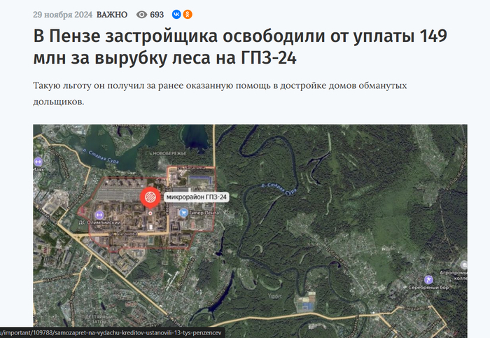 Однако имея практически готовое здание в центре города, в Пензе рубят леса под застройку человейников.