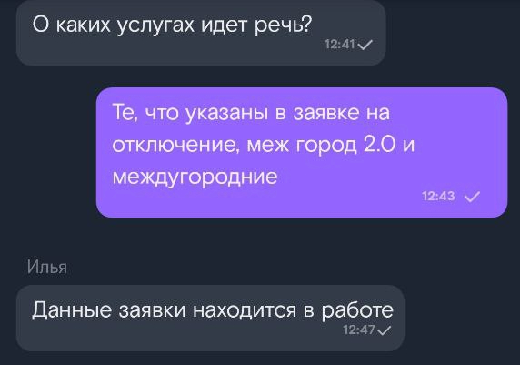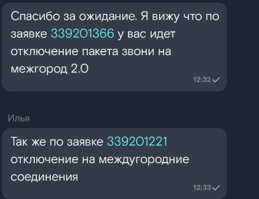 Смотрю в активные заявки, действительно, там есть две каких-то заявки на изменение опций, которые были созданы типа в 8 утра (жаль что я спал в это время, и жаль что кроме меня ни у кого нет доступа в ЛК, а приложение я установил после их звонка ближе к обеду. По любому мошенники решили от моего имени позвонить в РТ и отключить мне межгород).