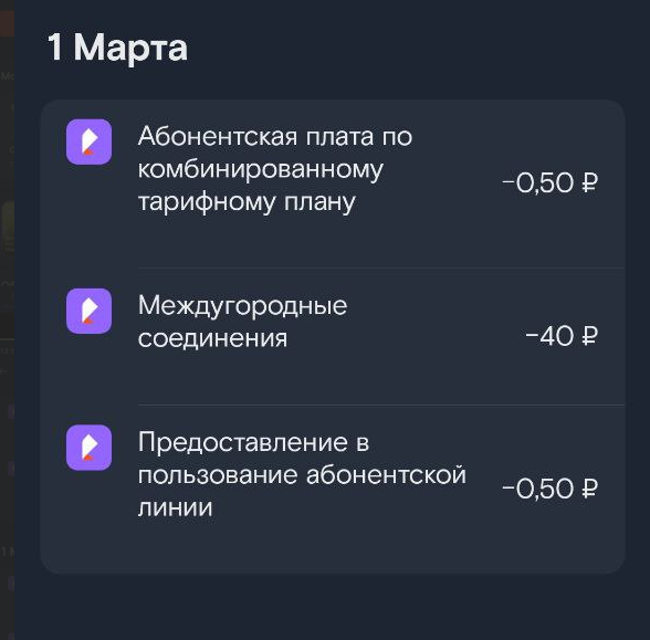 За март 2025 года помимо основных списаний средств, появились еще какие-то 40 рублей. И за февраль и за январь и даже за декабрь 2024 года.