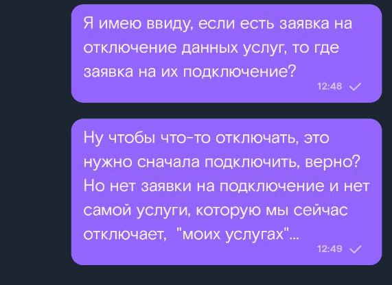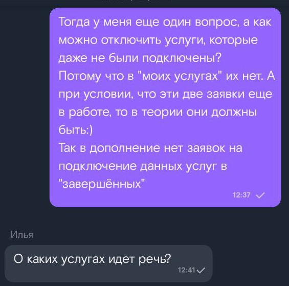 Я: Во-первых я такую услугу не подключал, во вторых, в ЛК у меня нет такой услуги в подключенных. О: Нет, она у вас есть, просто она не отображается с телефона
