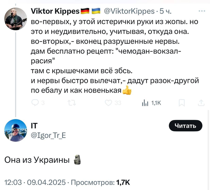 2144 Ignatbrat 6 месяцев назад Снова котёл Политика Скриншот X (Twitter) Украина Дичь Украинцы Русофобия Двойные стандарты Мат 126 7 2 1 Ещё 0