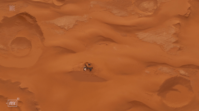 Сначала предстояло найти пустыню на просторах России. И не просто пустыню, а чтобы были видны домики, выступающие из под барханов. По сюжету, жители покинули Марс и на заброшенные деревни наступают дюны.