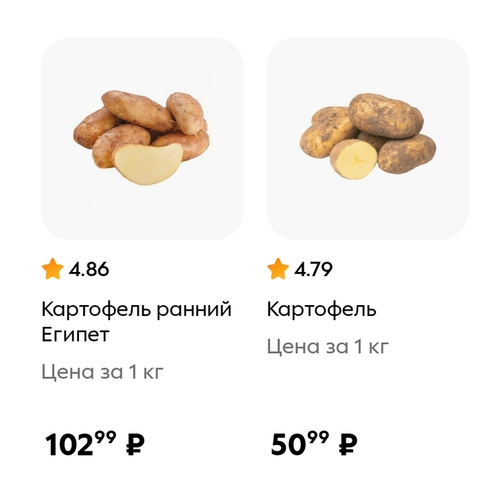 1 VitalikSh Экономика Ответ на пост «Есть картошка?А если найду» 9 месяцев назад В Пятерке в Москве в приложении российский картофель 129.99 руб за 1 кг. O_o З.Ы. На картоху )))) Показать полностью 2 [моё] Картофель Текст Огород Сельское хозяйство Цены Скриншот Овощи Продукты Рост цен Ответ на пост Длиннопост Ещё 0