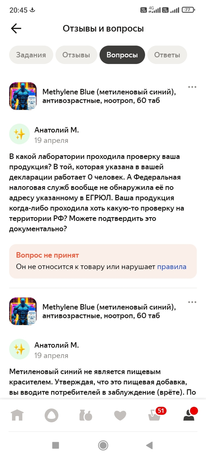 @Yandex.Market, можете объяснить какие именно правила нарушают мои вопросы?