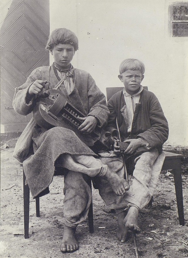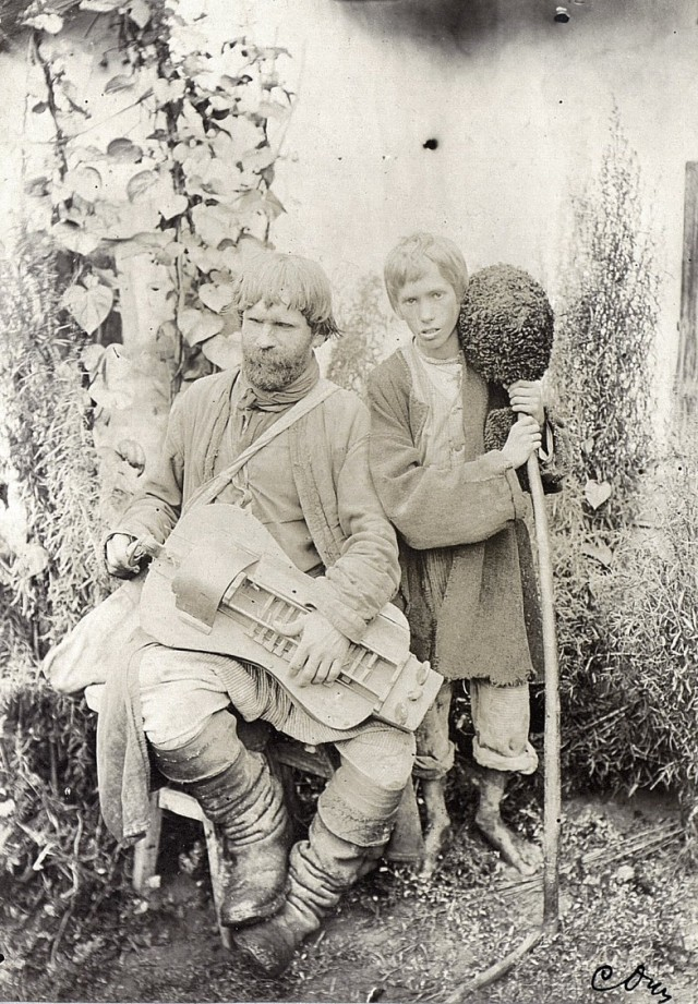 Волынская губерния. Малороссы. Нищие в мест. Славута. Слепец с кобзой и мальчик-поводырь. Местечко Славута. Заславский уезд