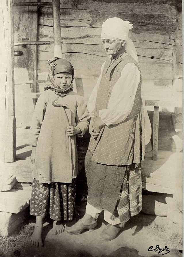 Девочка в будничной одежде и старуха в праздничном костюме. Полтавская губ.