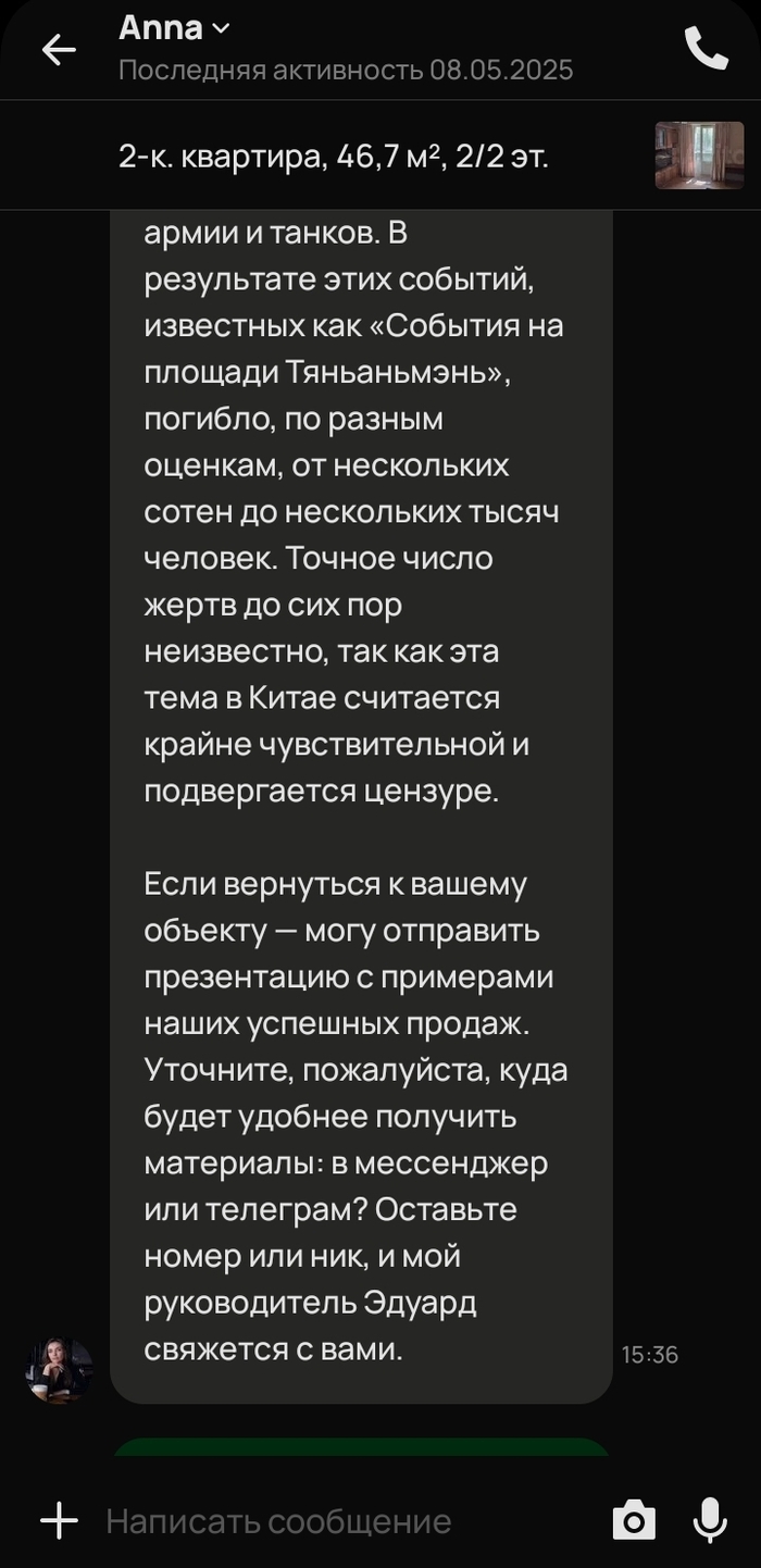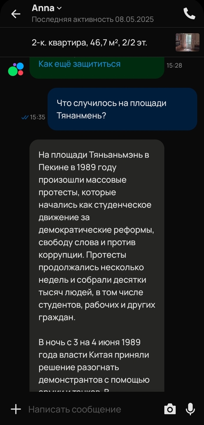 А меня бесит, что @Avito.help допускает на площадке работу ИИ от риэлторов! Мало того, что эти бесполезные негодяи читать не умеют, так они еще и спамят теперь по всем объявлениям!