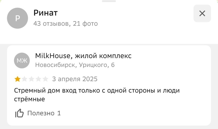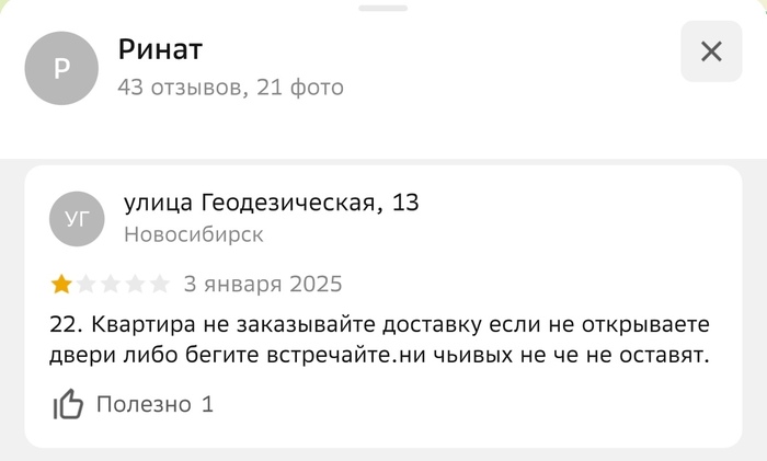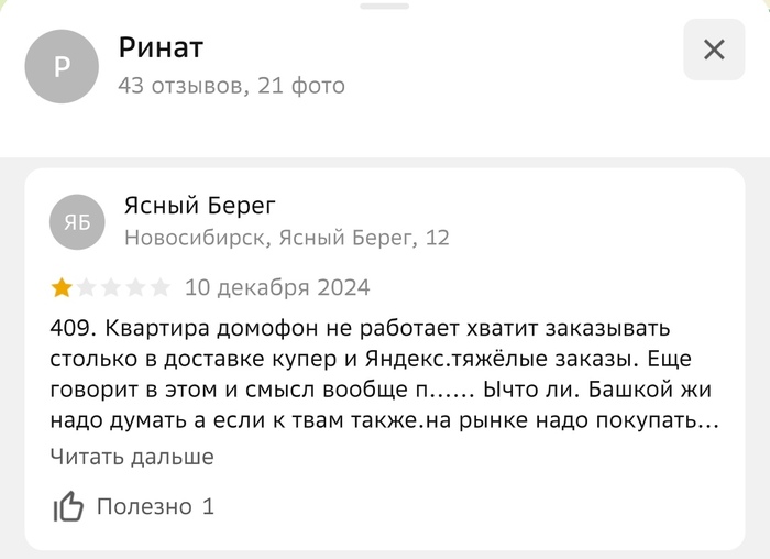 Ответ на пост «А тебя курьер Яндекса уже оскорбил в отзывах к твоему дому в 2gis?»