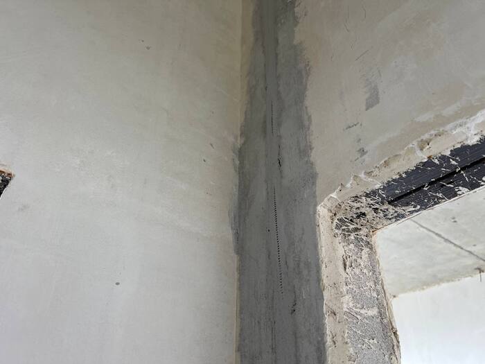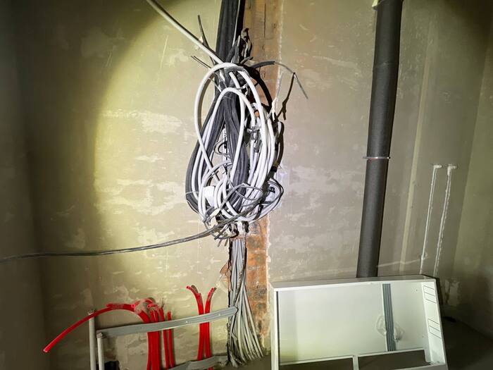 – Штробление под электропроводку делали с душой, но глубины не хватило — гофра выступает за уровень отделки стен, что затруднит качественную отделку.