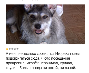А есть тут представители 2гис? Как Вы прокомментируете удаление вот такого отзыва? Вы что там у входа салона с камерой стояли и проверяли всех собак и кошек?