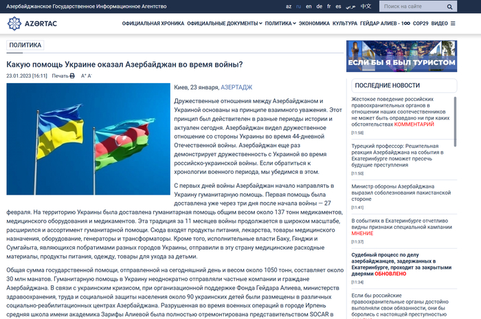 А Азербайджайнский МИД не хочет прокоментировать поставки вооружения Украине? Список крайне внушительный: