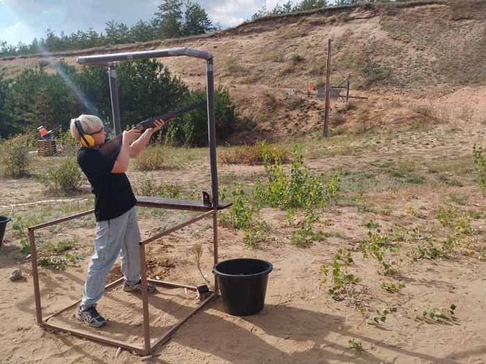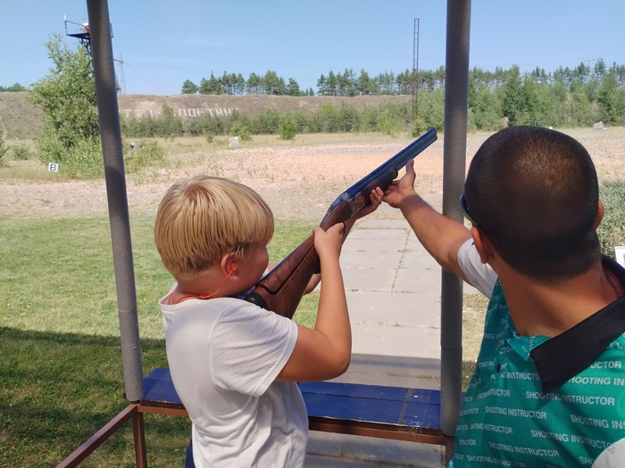 Через некоторое время, мы опять поехали на стрельбище, а потом ещё раз. На данный момент результат нормальный, примерно половину тарелок летящих в разных направлениях сын сбивает.