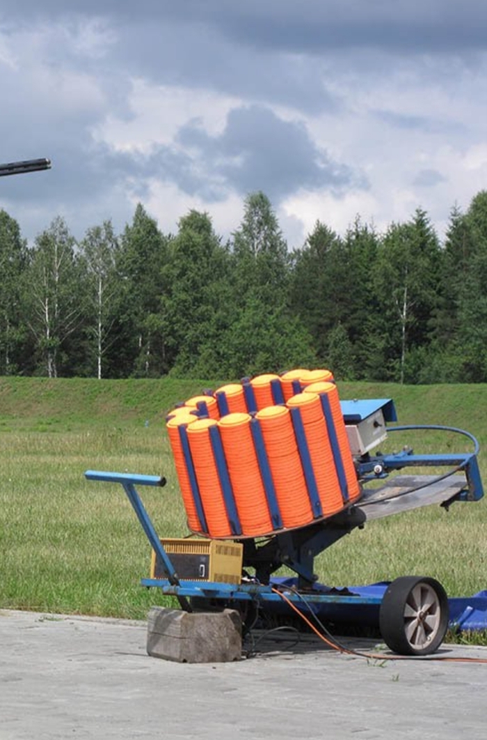 На площадке для стрельбы из гладкоствольного оружия установлено несколько таких машин.
