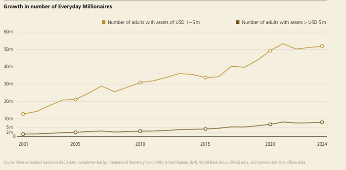 Про рост миллионеров в целом по миру, оно если чего вообще не снижается, они везде растут: