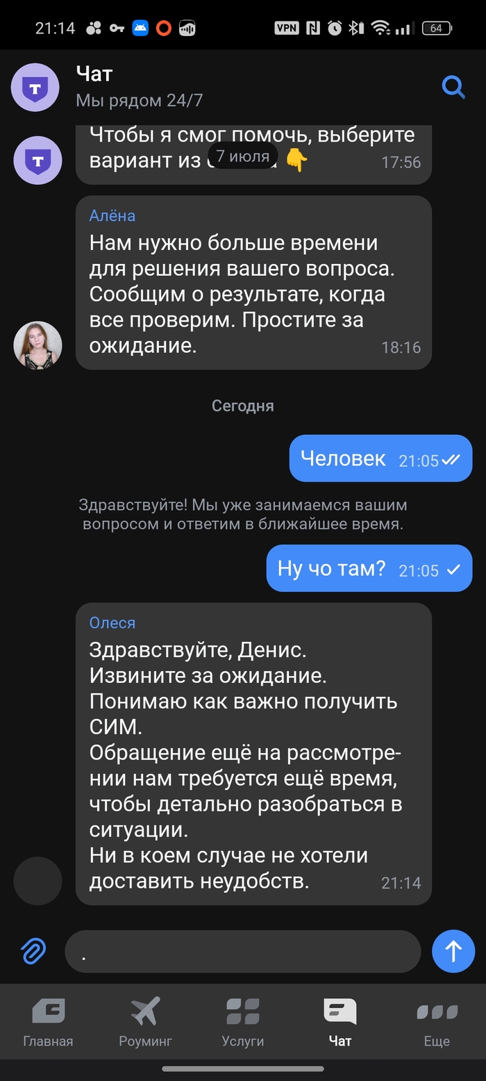 Ну вот. Сайт с которого я пришёл к ним за симкой поправили, теперь там "правильная" цена, как и в приложении. Ответа так и не поступило, зато выкинуло из приложения, где велась переписка с техподдержкой. Вот те на. Неожиданно. Адекватный ответ от представителя последует?