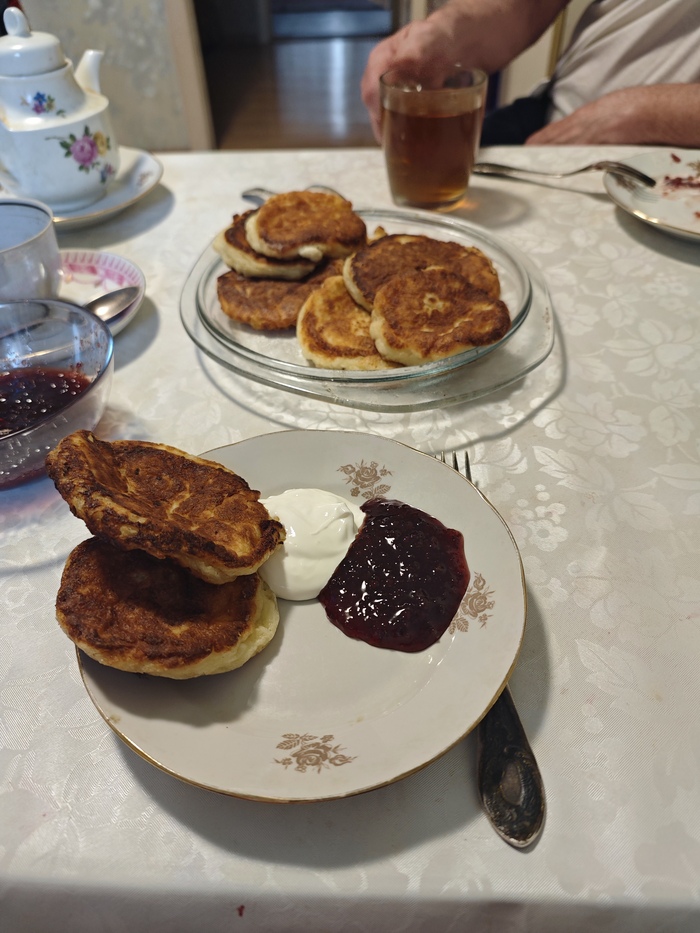 Тут система дала сбой - сырники (самые вкусные на свете, без вариантов) с местной сметаной и вишнёвым вареньем... 😍😍😍