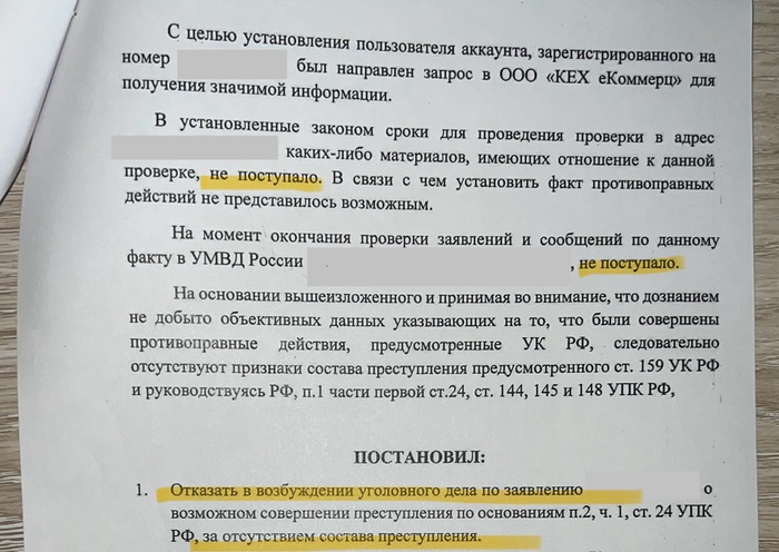 Внимание, самое интересное! На мои повторные обращения уже после ответа от МВД я получила следующий ответ от Авито дословно: