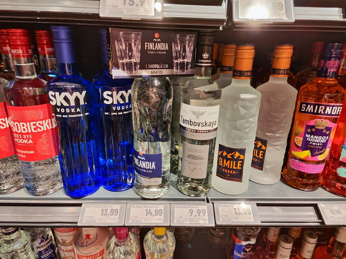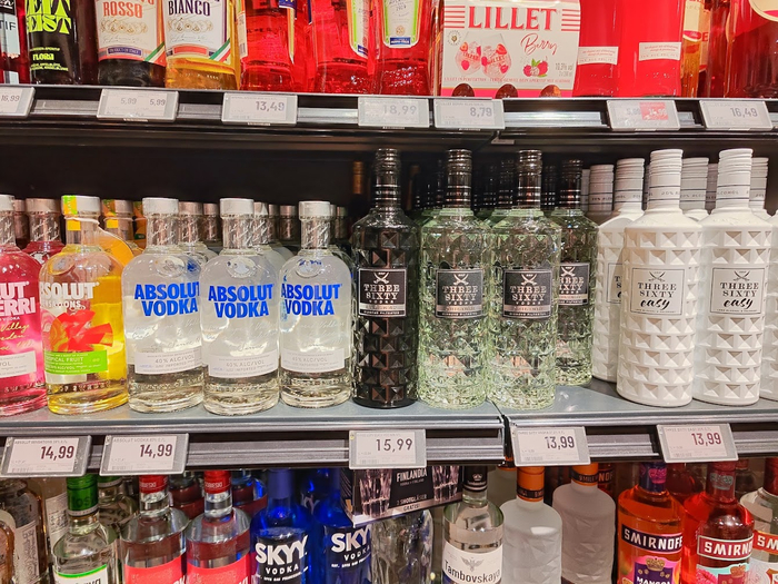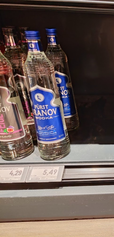 бутылка водки 0,7л с крепостью 37,5 стоит в супермаркетах 5,49€