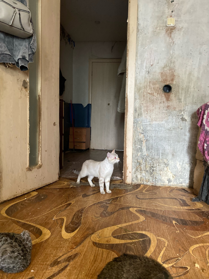 К сожалению, 4 котятам из этой квартиры не повезло, еще в самом начале в квартиру попал сторонний волонтер, предложив помощь машиной. И забрала оттуда 4 самых маленьких котят, не сказав никому. Котята заразились у нее панлейкопенией и сейчас сильно болеют. Именно по этой причине мы и сами не вывозили и не разрешали вывозить этих кошек в сами приюты, где много животных.