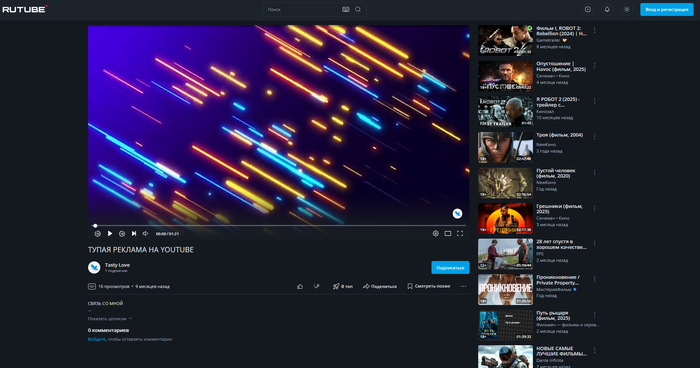 Пятнадцать минут на Рутубе — и у тебя начинается экзистенциальный кризис. Реклама через каждые тридцать секунд. Интерфейс, будто его проектировал человек, ненавидящий людей. Рекомендации, подобранные по принципу "как максимально испортить тебе настроение". Это же ГЕНИАЛЬНО!