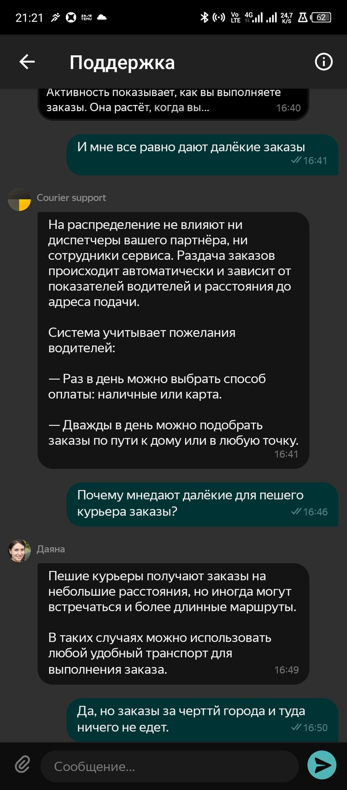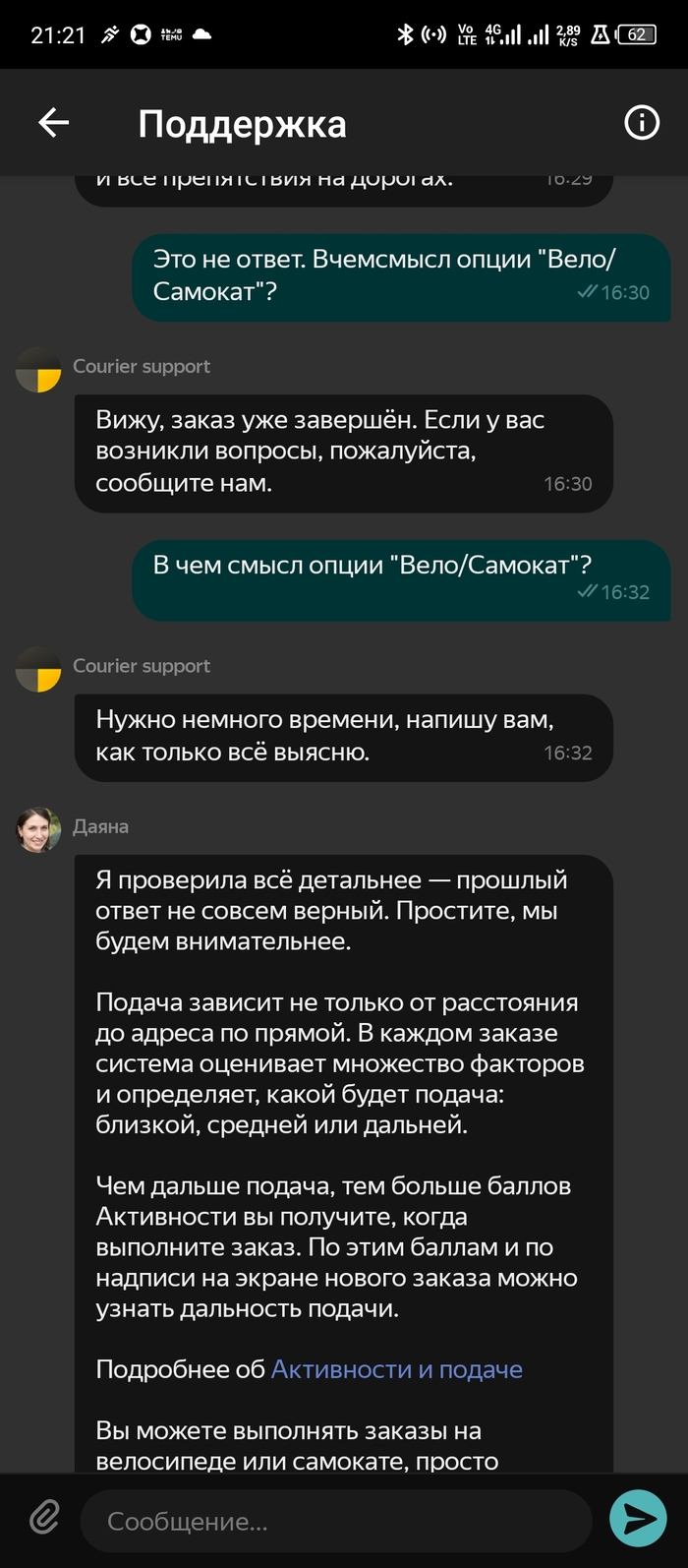 Ответ DiegoSanchezz в «Обман поддержки Яндекс Еды, курьер опоздал на час и испортил еду»