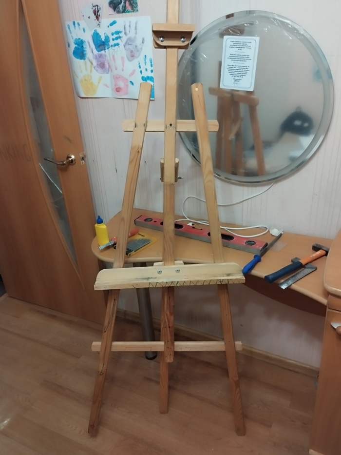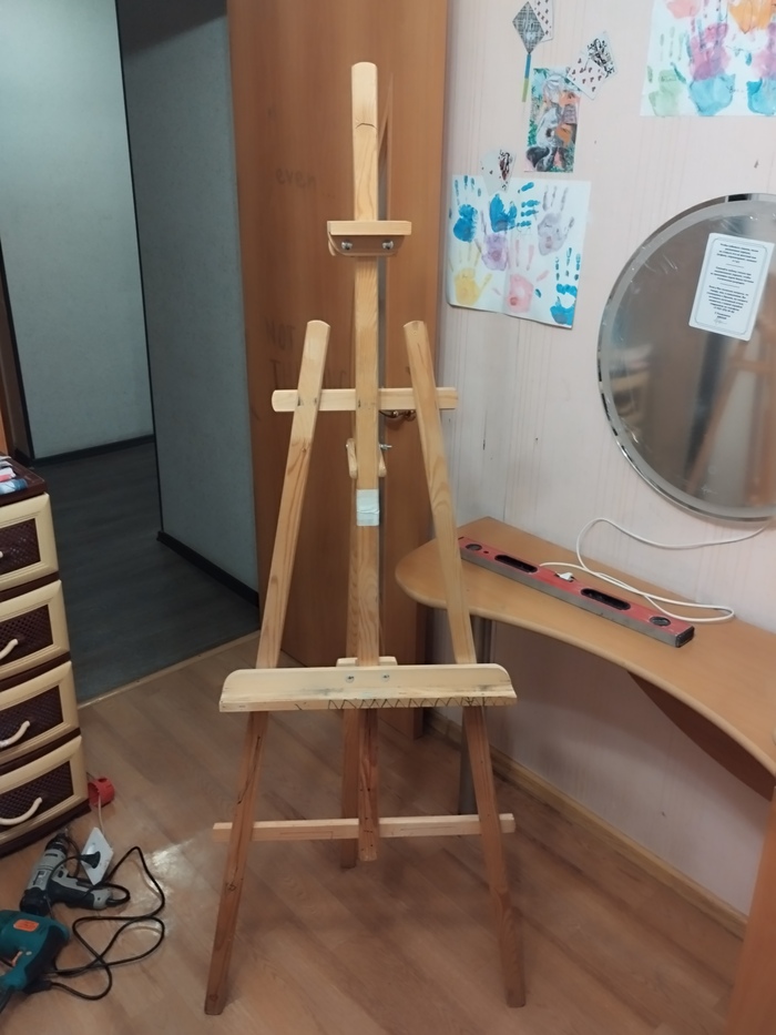 Хозяйка принесла мольберт у которого была сломана опорная стойка.
