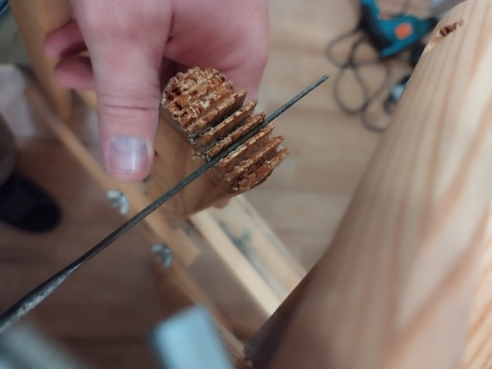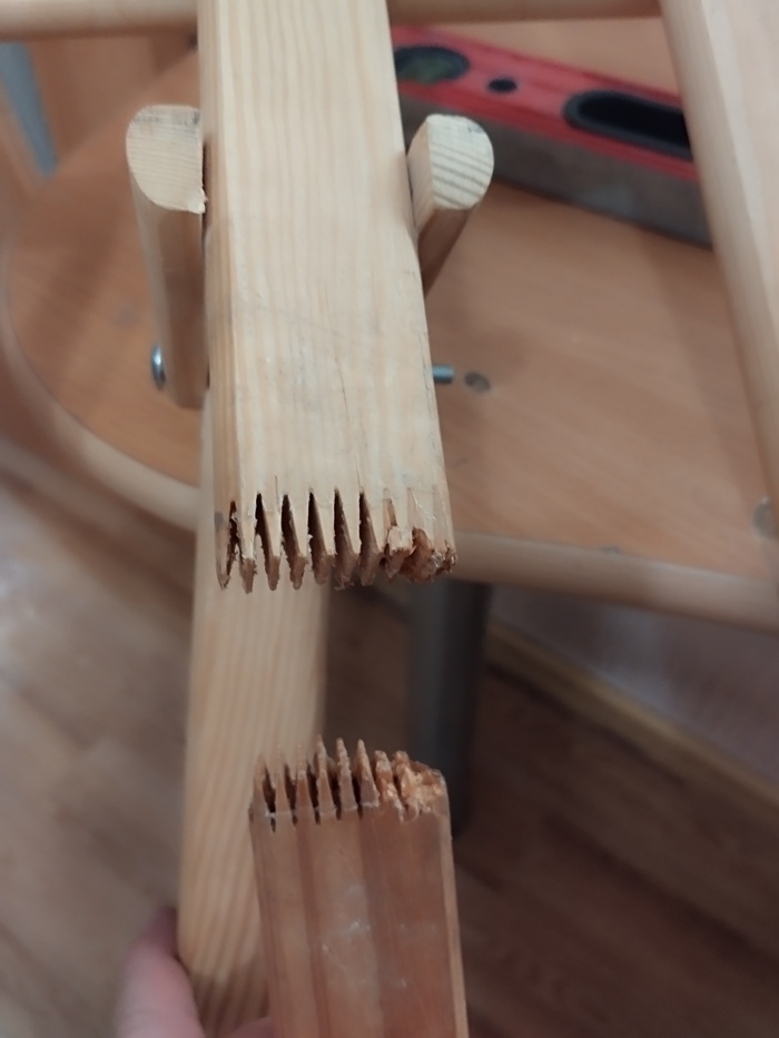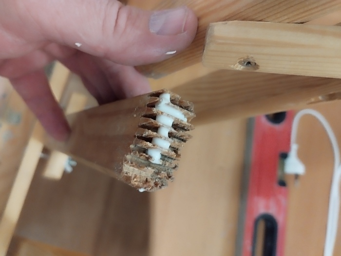 Места крепления реек друг к другу, я разобрал, смазал клеем, и собрал снова капнув ПВА в отверстия от саморезов и стянув новыми более крупными шурупами.