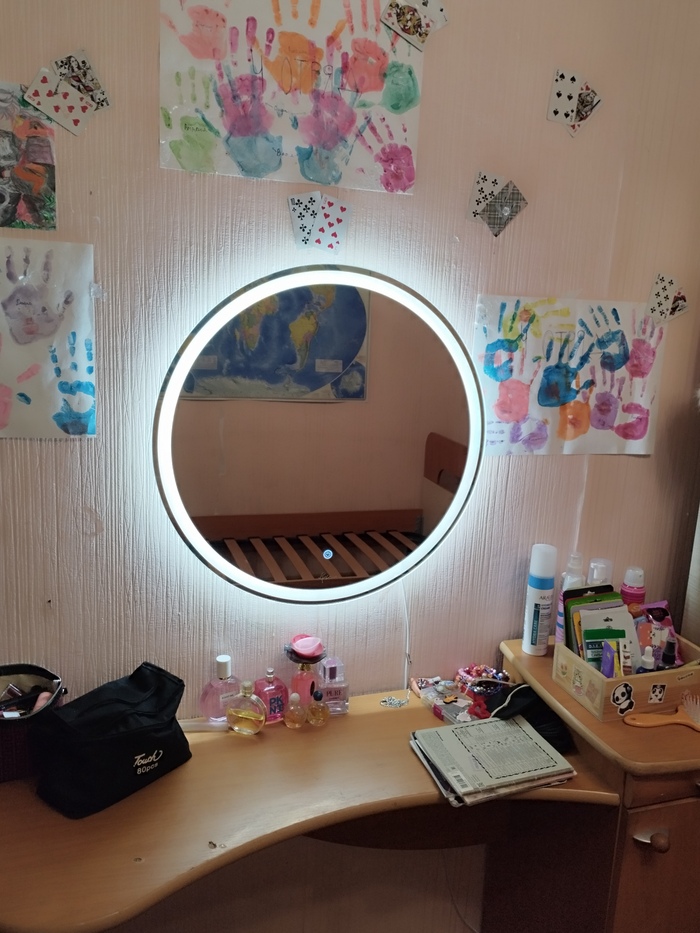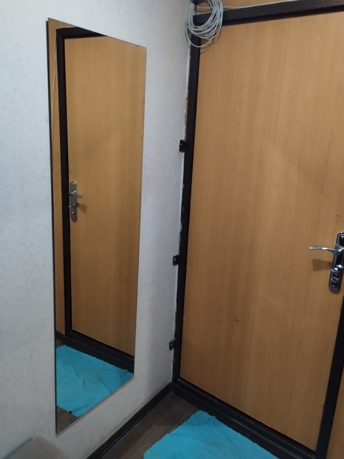Пришла стройная девушка подросток. Я держал зеркало приложив его к стене и менял его положение. Добившись нужного результата когда зеркало маму и дочку всё устроило, я поставил на стене метку и приступил к разметке и сверлению.