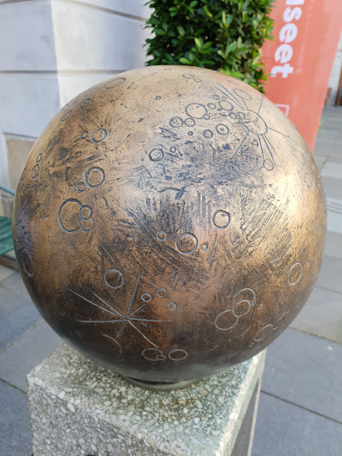 Земля у нас уже в виде глобуса в 7,5 км от Солнца. Знаете на каком расстояние от Земли в таком масштабе будет находится Луна? В 20 метрах!