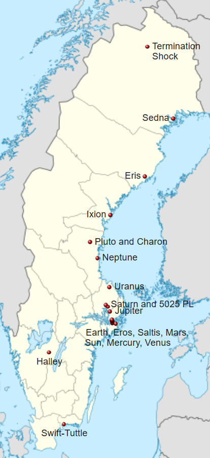 Вот так это выглядит на карте Швеции: где у нас Солнце, а где Нептун.