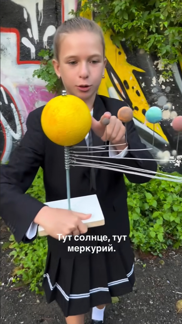 Мне кажется, самый интересный факт, который можно рассказать об этой модели Солнечной системы, что модель лукавит с масштабом. А модель с корректным масштабом мы физически не сможем презентовать. При подобном размере Солнца (сколько тут? Пусть будет 15 см для удобства) Земля бы была в 15 метрах от него. И размером с ядрышко гречки, если не меньше (~1,5 мм). Такая модель была бы не очень красивой.