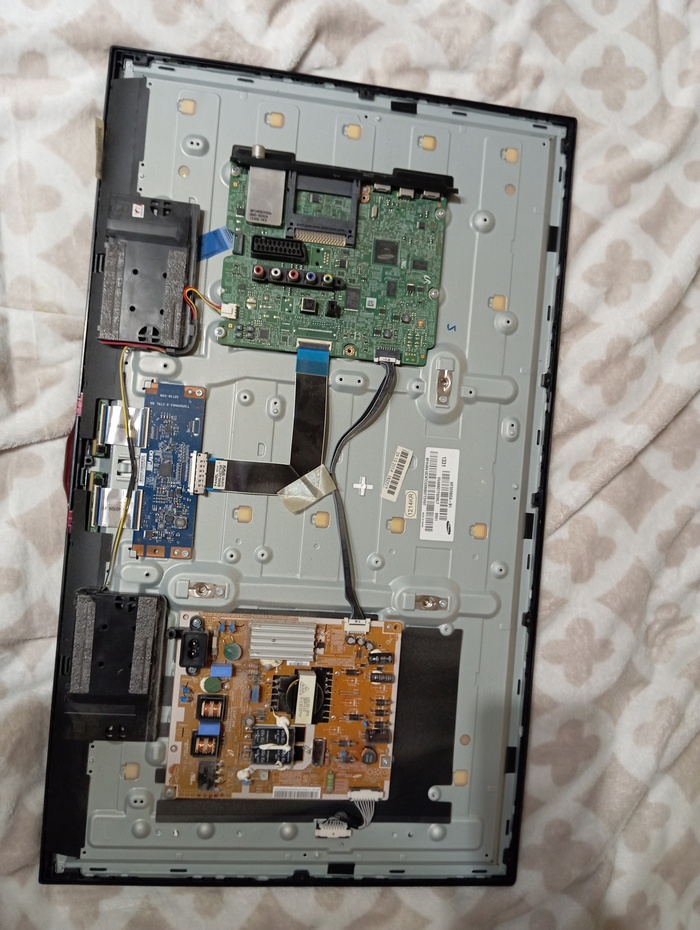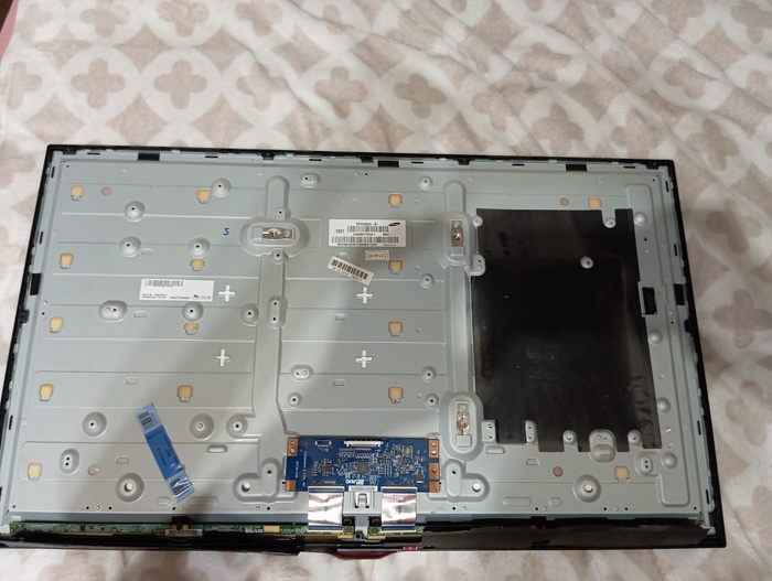 Отщелкнул рамку ТВ, отклонил плёнку и извлёк из креплений платы матрицы