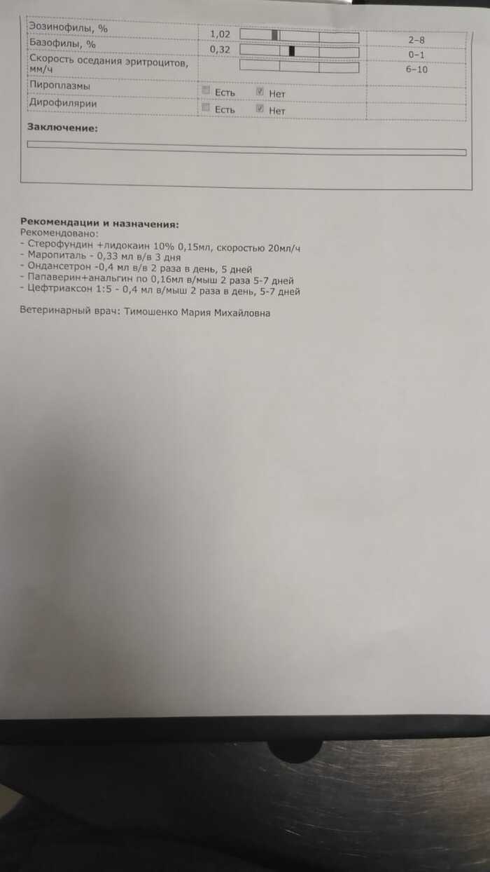 Миппо пока не ест. Кишечник воспален. Гемоглобин низкий...