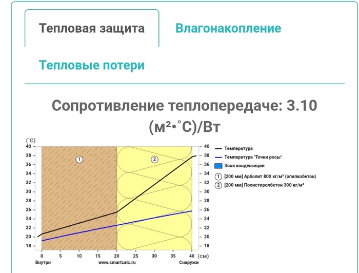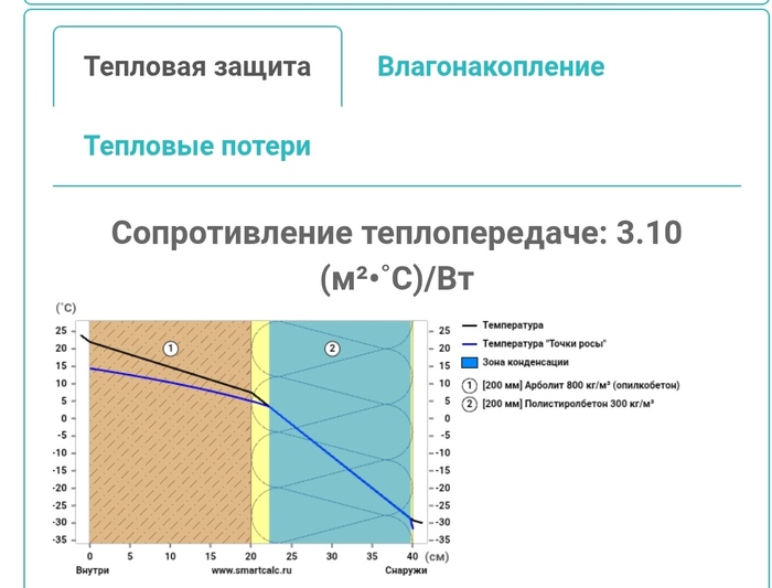 Берём первый выпавший, загоняем параметры стены, спрашиваем, что будет на морозе, и в жару. Он показывает схемы: