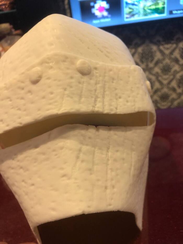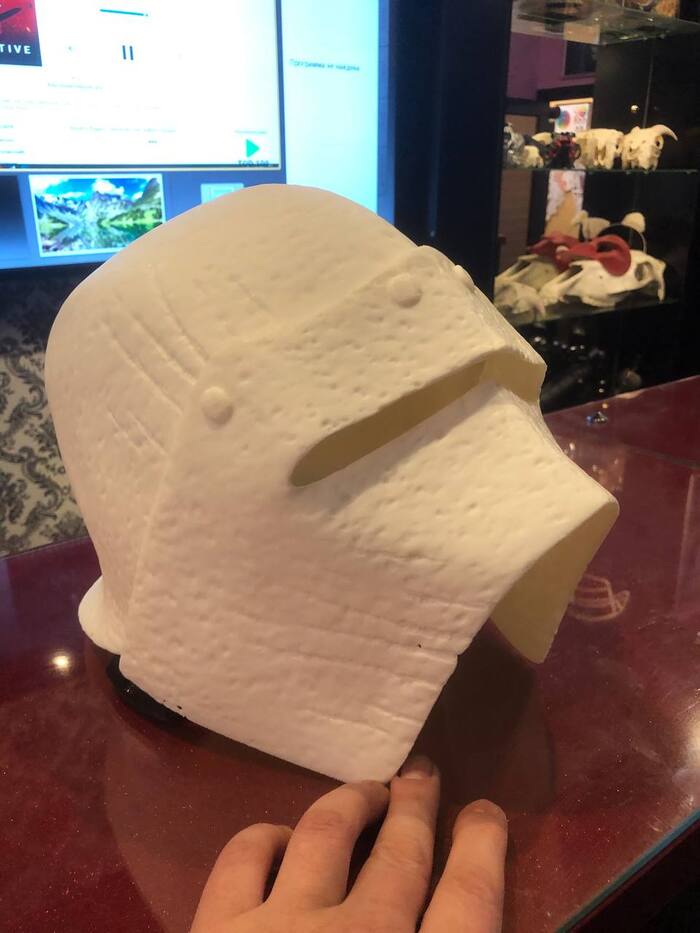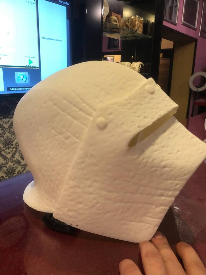 Шлем получился крайне интересным элементом костюма тк он целиком не влезает и его пришлось разбивать на составные части.