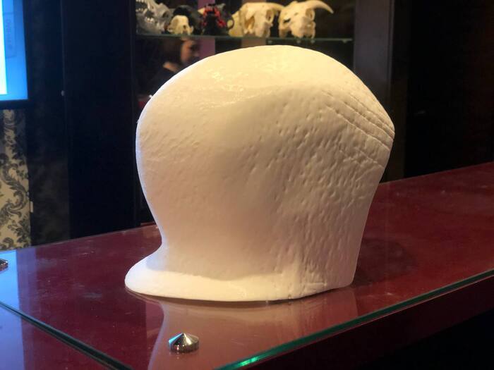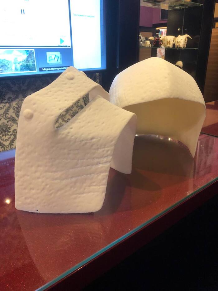 Это основа защиты головы. Нормально налезет на мою бестолковку с учётом подшлемника - тут уже учли факап наплечника и наруча. Сохраняется текстура сохраняется текстура некачественной нековки с наплывами, кавернами и раковинами - я с этого прям кайфую))
