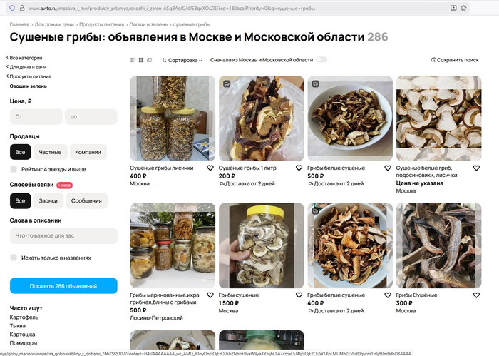 А самое интересное, что объявлений с какими хочешь грибами на авито - море просто: