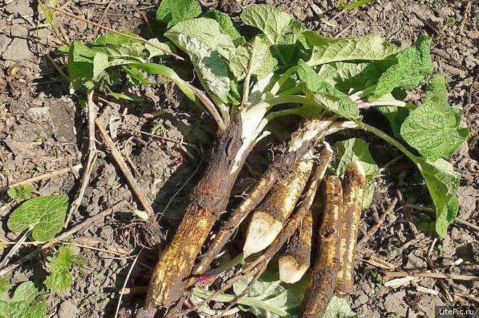 Корень репейника (лопуха). В разных регионах по-разному это растение в народе называют. Тут уже сложнее добыча. Как минимум нож нужен.