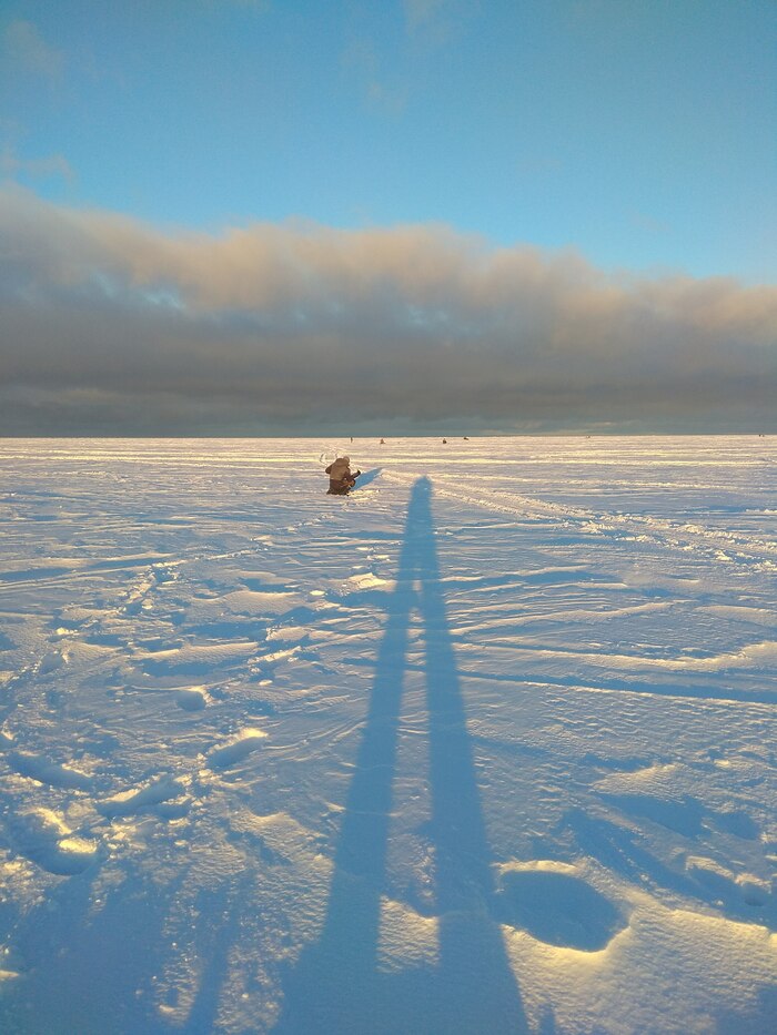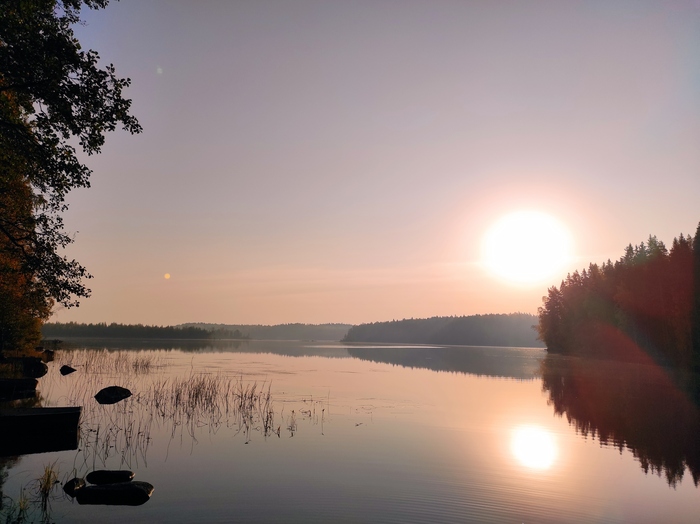 Суббота, 25/10/2025. Минус два с утра, но рыбалку это не остановит. Снял с лодки. Туман плывёт, поэтому камера на телефоне не знает куда настраиваться.