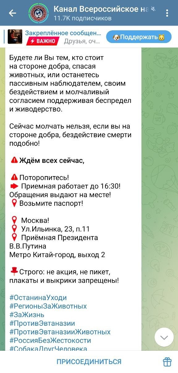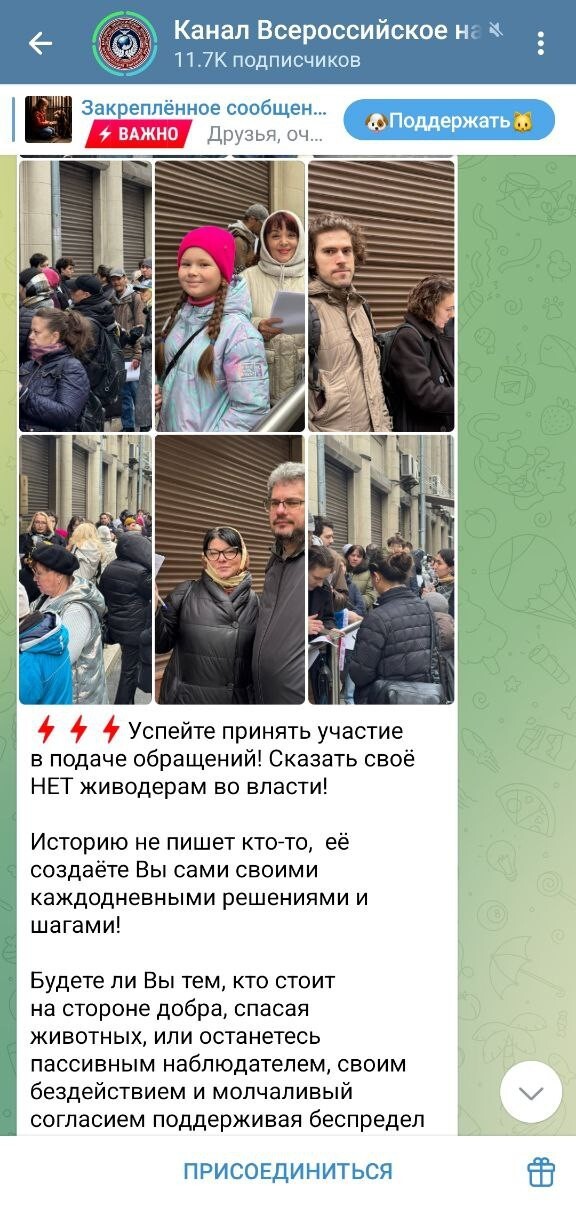 Пока люди продолжают страдать и гибнуть от нападений синантропных хищников, в Москве, где с 2009 года введён безвозвратный отлов, защитники бродячих собак вновь проводят «собачью линию» — акцию по массовой подаче обращений против законопроектов, призванных обеспечить безопасность граждан.